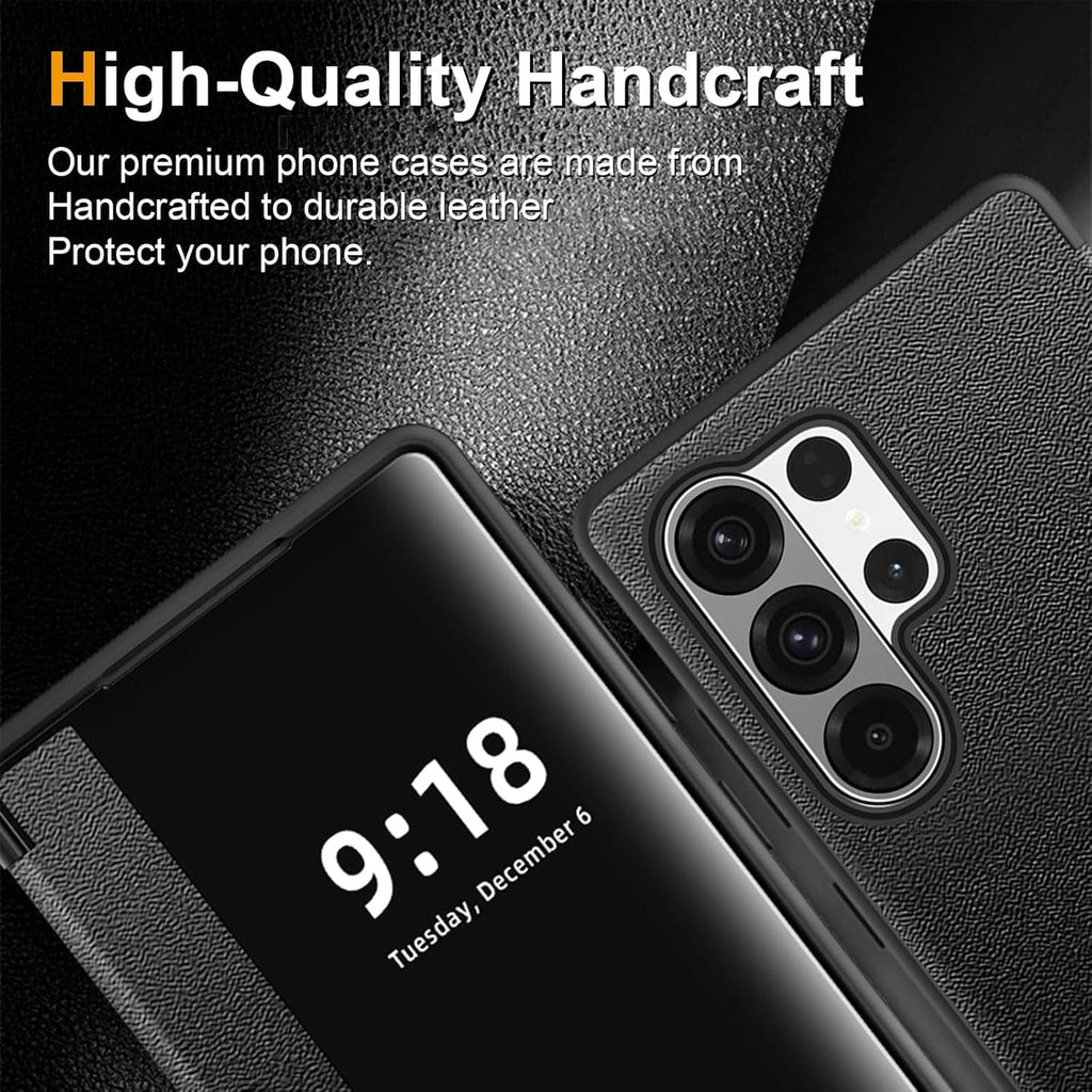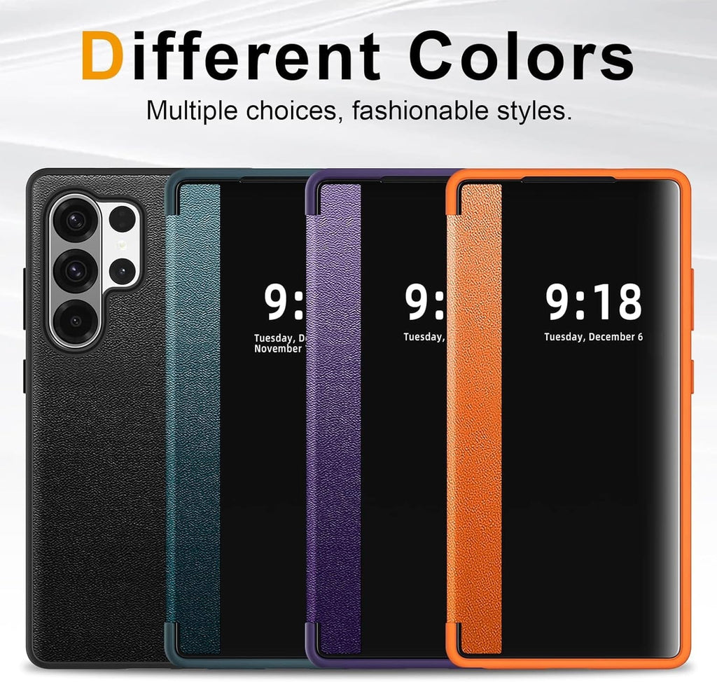 Your Galaxy S26 Ultra screen is exposed every second it sits in your pocket, on a table, or face-down on any surface. Standard cases protect the back and sides while leaving the most expensive component completely vulnerable. This S-View flip case wraps your entire device in 360-degree full body protection with a frosted translucent window that lets you check notifications, time, and caller ID without ever opening the cover. Black folio design with shockproof construction built for people who take screen protection seriously.