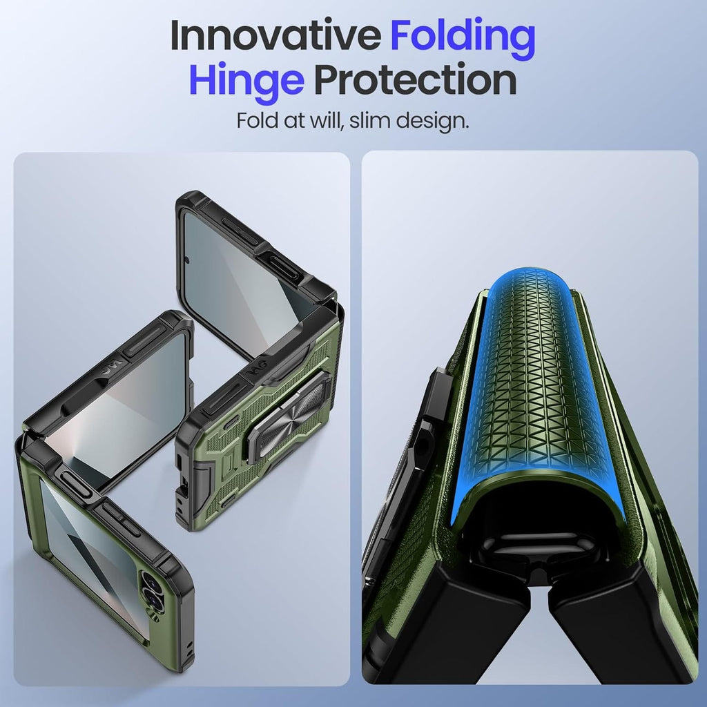 【Build-in Screen Protection】This Galaxy Flip 6 case built-in screen protector. High-quality tempered glass screen protector which is designed to provide drop & scratch protection for your Samsung Flip 6.