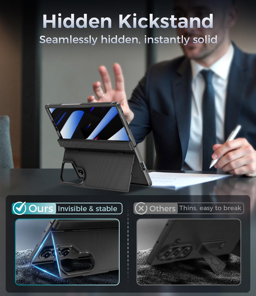 Whether you’re commuting, working on-site, or adventuring outdoors, this case defends your $2,000 foldable from drops, scratches, and prying eyes. The rugged polycarbonate and TPU hybrid shell absorbs shock while maintaining foldable flexibility. The hinge protector reduces long-term wear, while the privacy screen protector ensures your sensitive information stays visible only to you. Plus, the integrated kickstand makes video streaming and hands-free calls easy.
