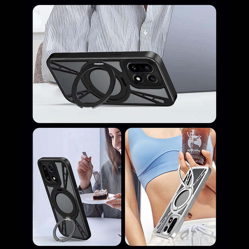 The OnePlus 15 5G Frameless Magnetic Kickstand Bumper Case is purpose-built for daily durability, hands-free usability, and magnetic charging ease — all without adding unnecessary bulk to your device. Designed for users who demand performance without compromise, this case is crafted from a precision blend of PC, soft silicone, and alloy components that reinforce your phone against everyday drops, scratches, and heat buildup.