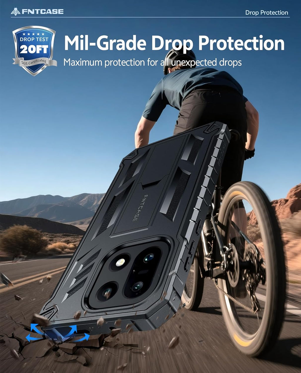 20-foot military-grade drop protection (MIL-STD-810G based testing)