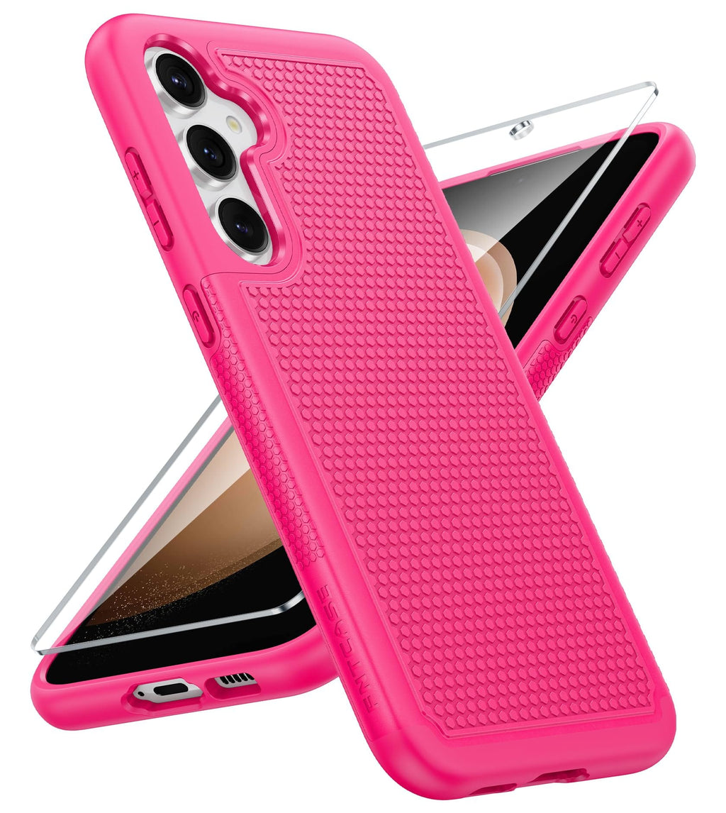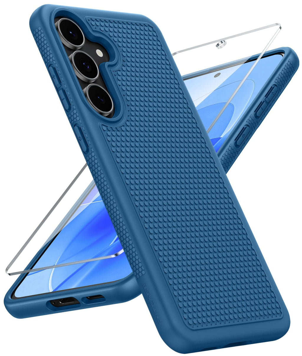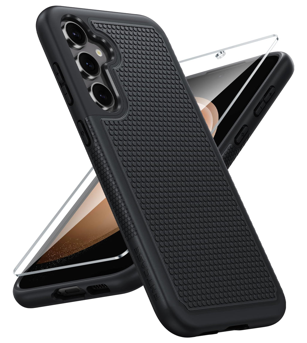Q: Will the hexagon texture feel rough or uncomfortable? A: The texture is noticeable but not aggressive. It provides functional anti-slip grip without feeling rough during extended holding. Some users report brief adjustment period (few days) getting accustomed to texture if coming from completely smooth case, but most appreciate the grip security once familiar. The texture is calibrated for function and comfort balance.