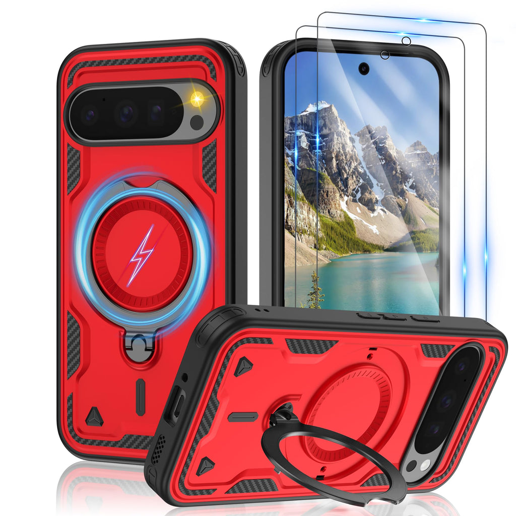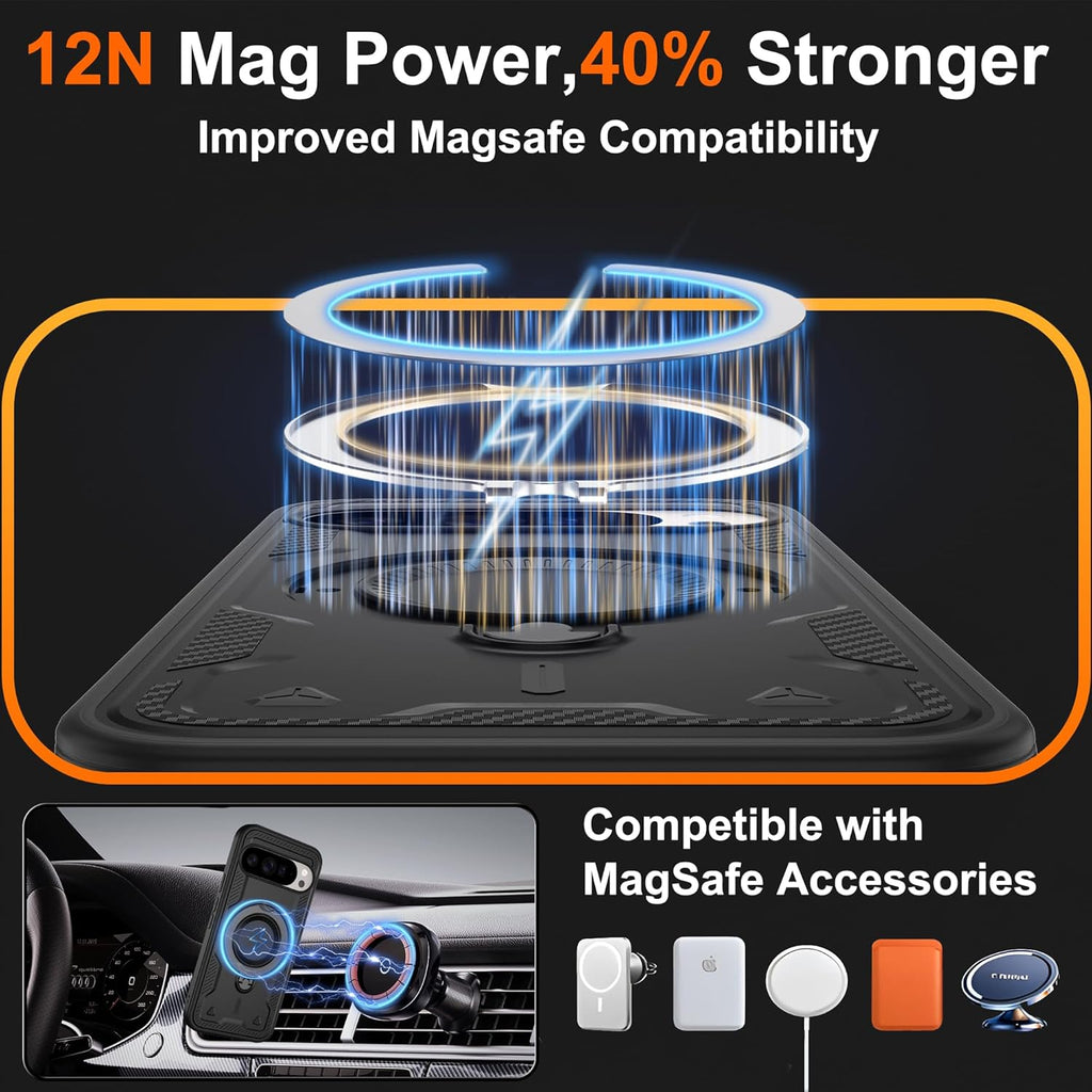 Google Pixel 10 Pro XL MagSafe Compatible Rugged Case with Dual Kickstands and Screen Protector