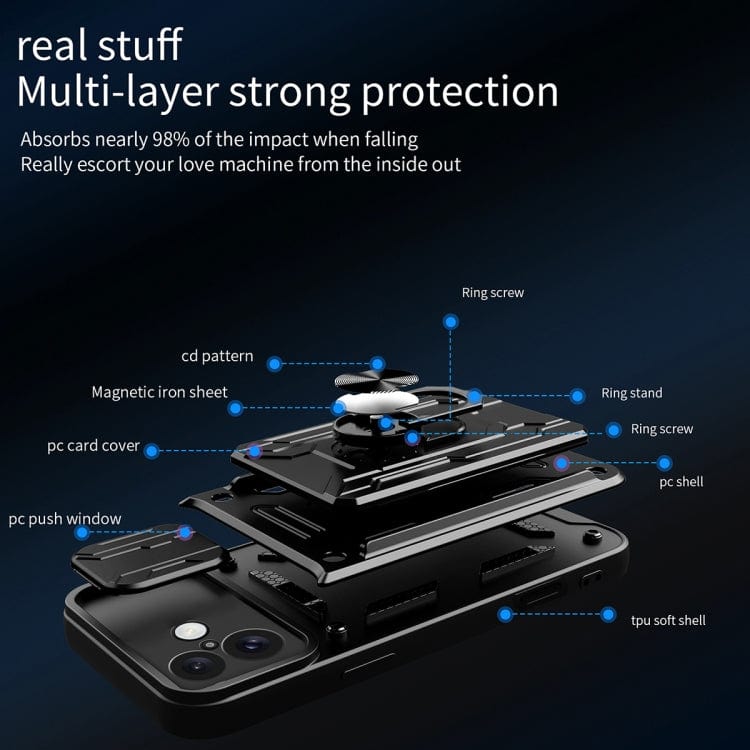 Sliding Camshield TPU+PC Phone Case with Card Slot