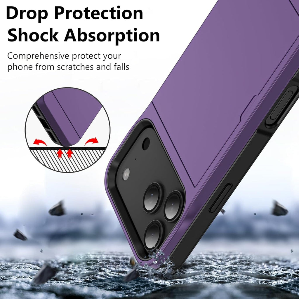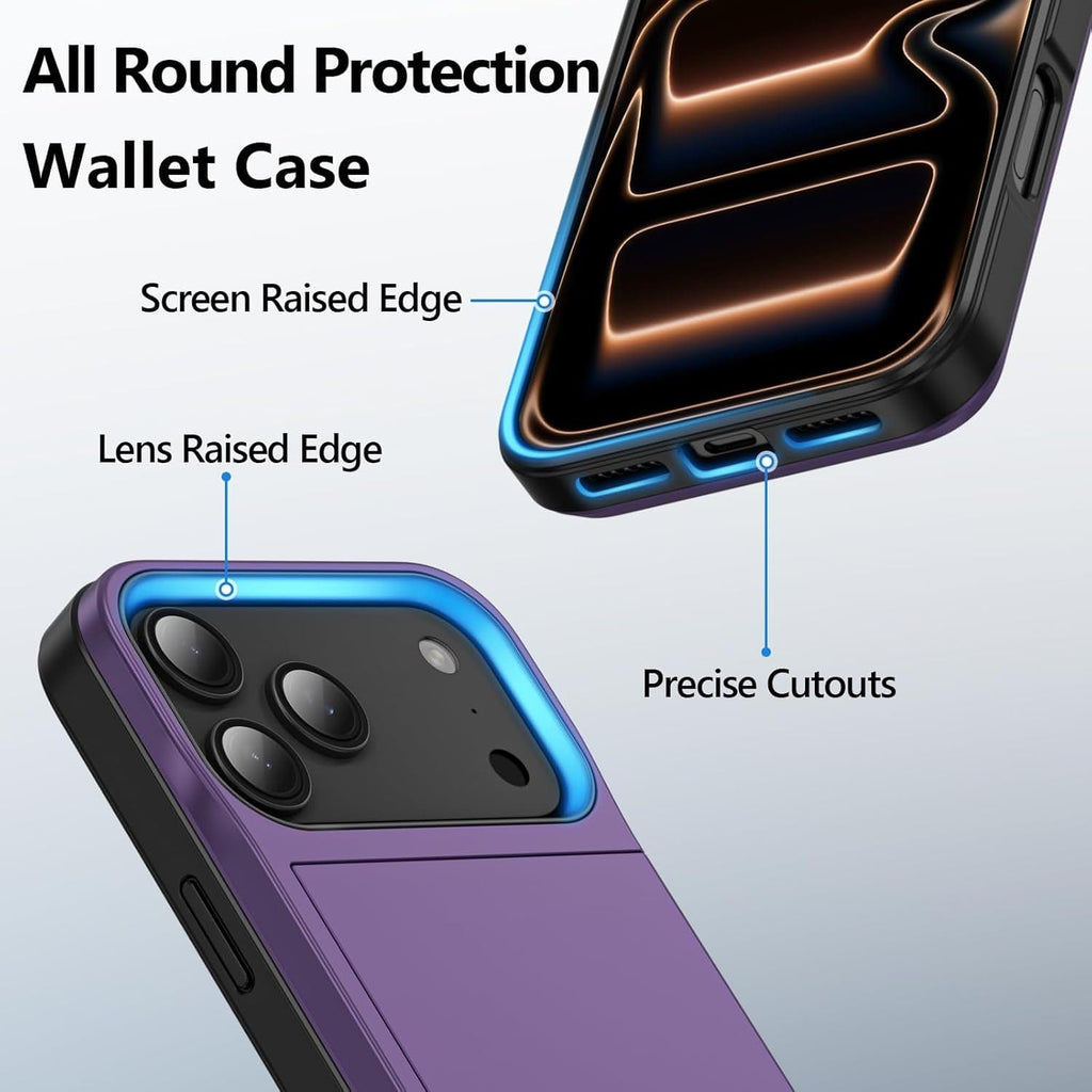 This cover for iphone 17 pro max case is made of shockproof TPU and scratch-resistant PC, provideing 360° drop protection with raised edges around the screen and camera, preventing drops, cracks and scratches. No need to carry a bulky wallet, you can easily place your ID cards, credit cards or cash.