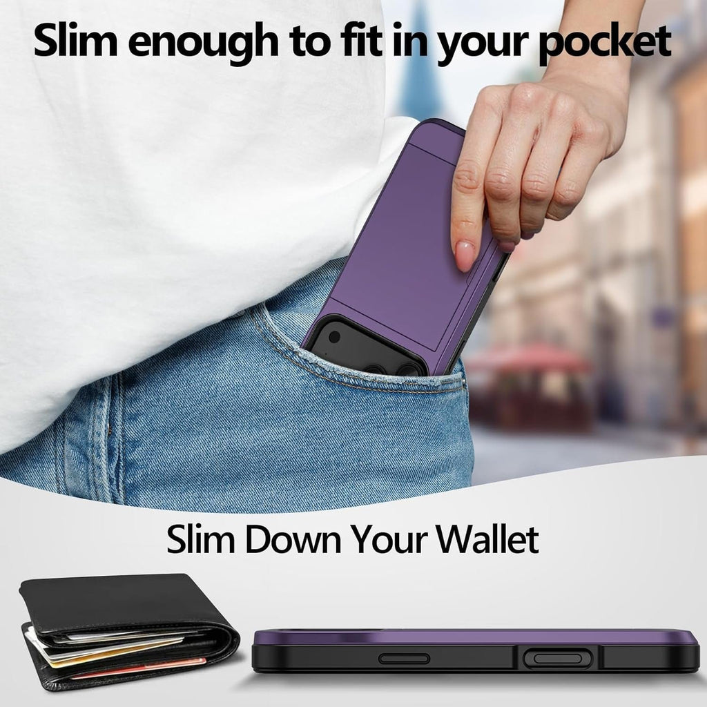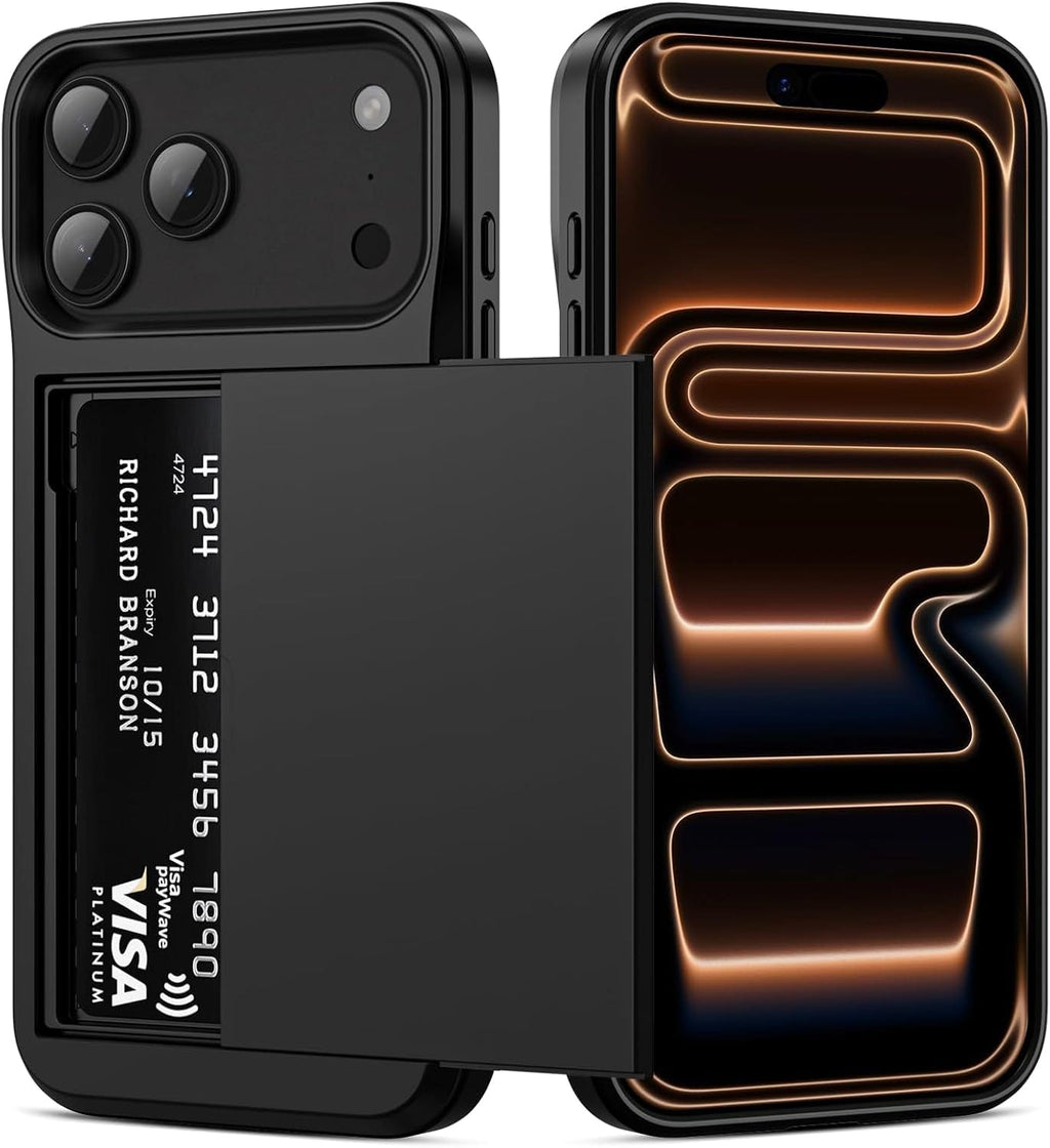 - Stores 2-3 Cards Wallet Case: Say goodbye to bulky wallets! This for iphone 17 pro max case with card holder securely stores 2-3 cards (credit cards, drivers license, or cash) in a sliding door. The closure keeps your cards safe, it’s an ideal 17 pro max case with wallet for those who prefer to travel light