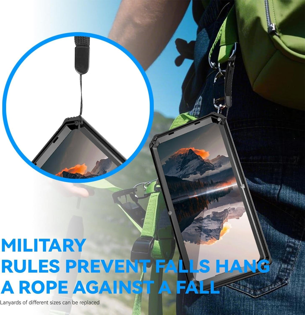 How does this compare to a standard military-grade case without metal? Standard military-grade polymer cases absorb impact through material compression. The aluminum frame on this case distributes force across a rigid structure before it reaches the phone. Metal provides structural protection that flexible materials physically cannot replicate, particularly at higher drop heights and against hard surface impacts.