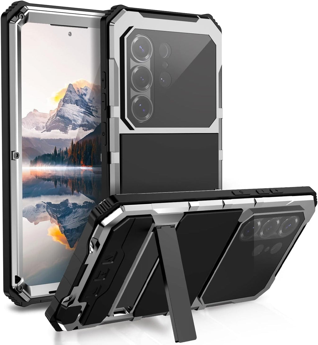 • 1x Galaxy S26 Ultra Aluminum Metal Case with Built-in Gorilla Glass Screen Protector and Magnetic Stand