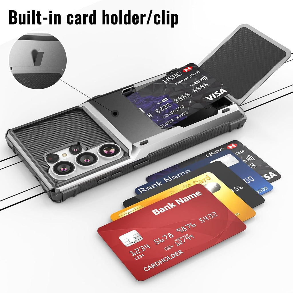 - 5 Hidden Card Slots — Concealed storage behind flip cover keeps cards secure and the profile slim